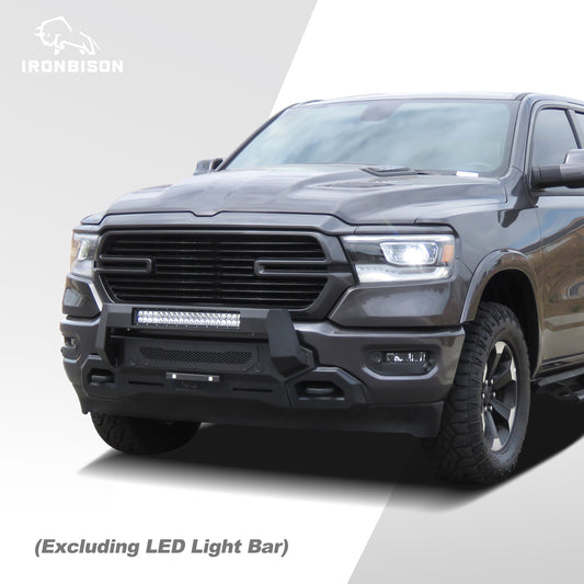 IRONBISON Front Bumper Compatible with 2019-2024 RAM 1500 (Exclude 19-24 Classic, 19-24 Diesel, 19-24 Rebel, 21-24 TRX Model) Can Add LED Light Bar Fine Texture Black Truck Bumper Guard Bull Bar