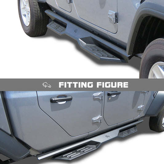 IRONBISON Defender Steps Running Boards Fit 2020-2025 Jeep Gladiator JT Truck Pickup Fine Texture Black Side Steps Nerf Bars Rock Slider Armor (IBDS-J017)