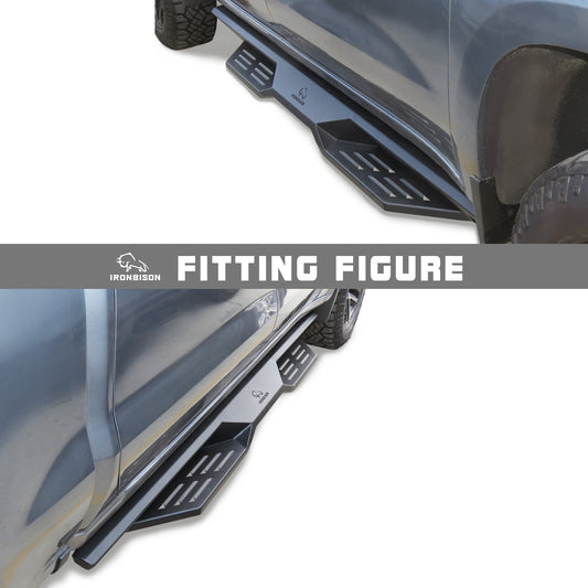 IRONBISON Defender Steps Running Boards Fit 2019-2025 Chevy Silverado/GMC Sierra 1500 | 2020-2025 Chevy Silverado/GMC Sierra 2500/3500 HD Double Cab Pick Up Fine Texture Black Side Steps Nerf Bars Rock Slider Armor (IBDS-C005)