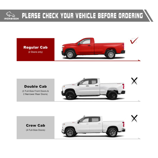 IRONBISON Running Boards Side Steps Fits 2019-2025 Chevy Silverado / GMC Sierra 1500 Regular Cab | 2020-2025 2500/3500 Regular Cab Heavy Duty Pickup Truck Off Road Nerf Bars Heavy Texture Black