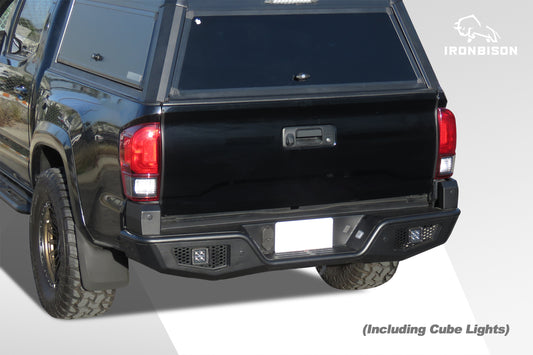 IRONBISON Rear Bumper Compatible with 2016-2023 Toyota Tacoma, Heavy Duty Full Width Pickup Truck Tacoma Back Bumper Guard With Cube Lights Offroad Steel Bumper Fine Texture Black
