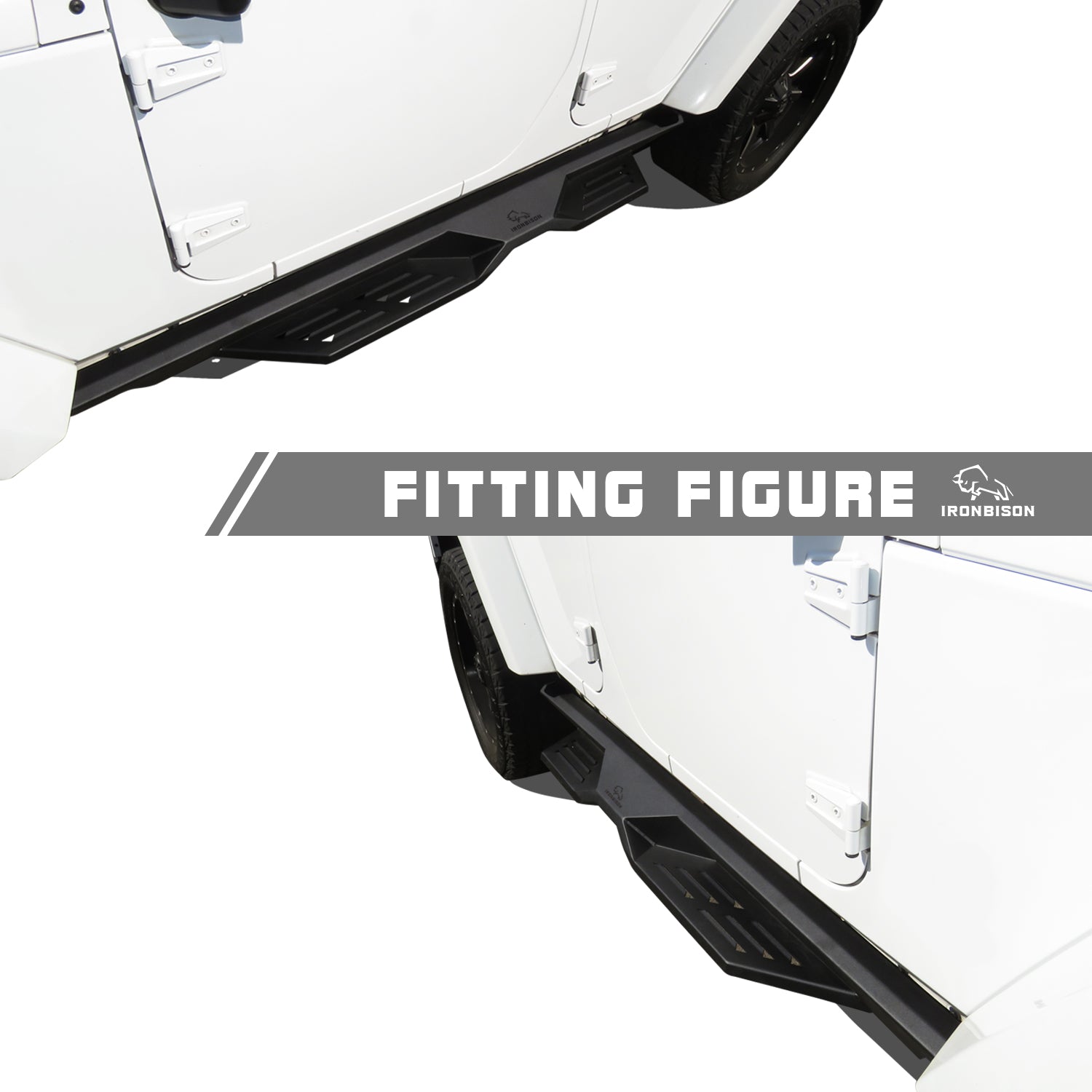 IRONBISON Defender Steps Running Boards Fit 2007-2018 Jeep Wrangler JK 4 Door (Excluded 2018 Wrangler JL) SUV Fine Texture Black Side Steps Nerf Bars Rock Slider Armor (IBDS-J011)