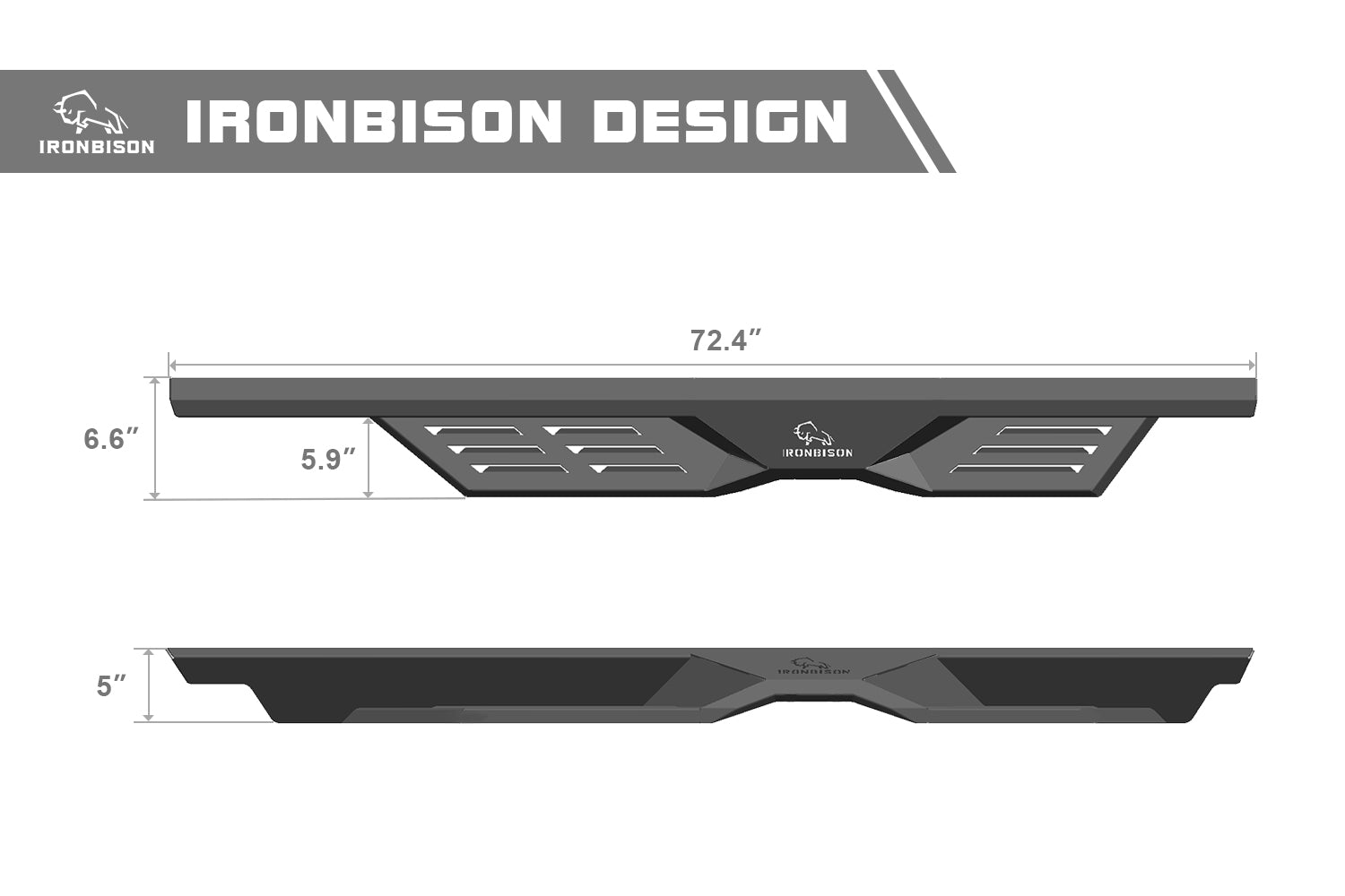 - Innovative Design - IRONBISON innovative wing shape 5” drop step pad design with 6” width step area. Mold formed non-slip strip safer for step in and out.