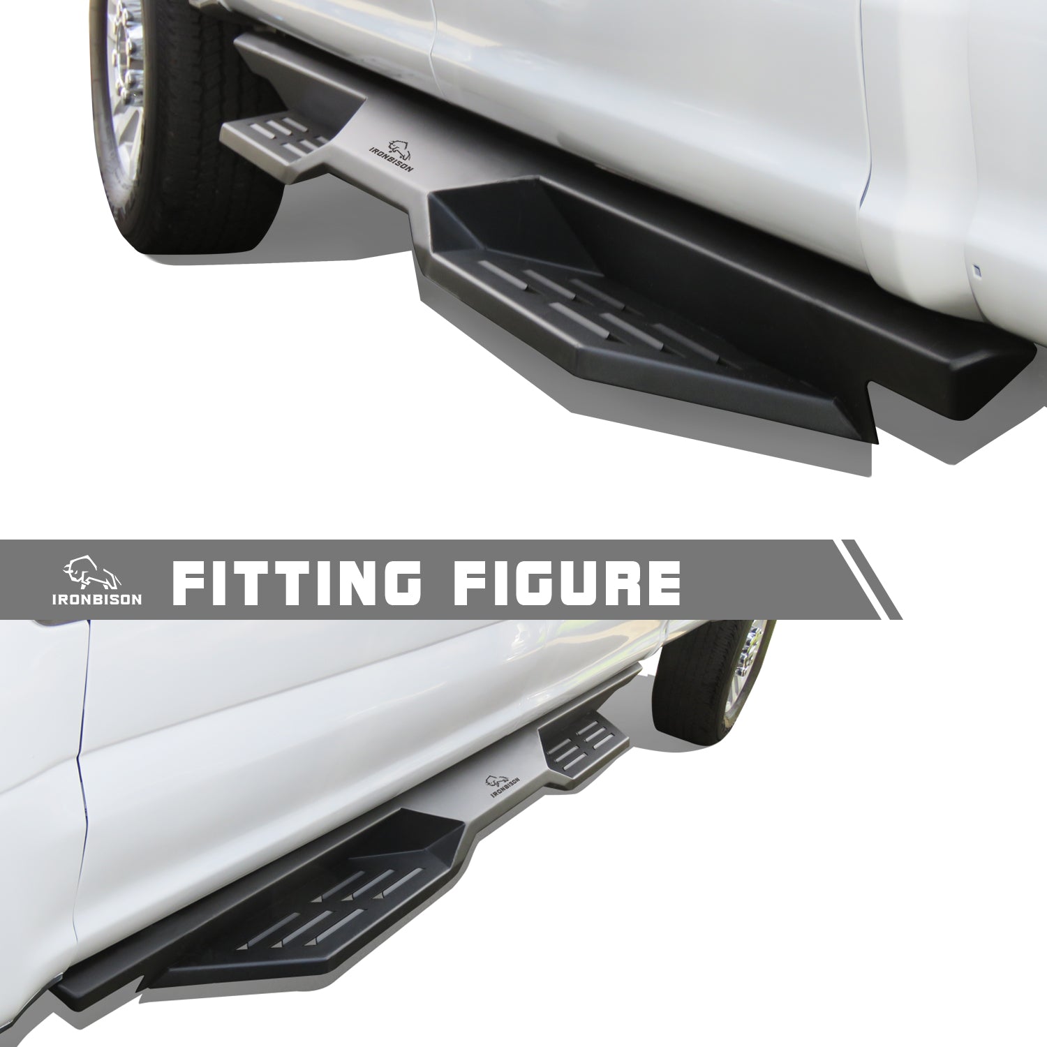 - Innovative Design - IRONBISON innovative wing shape 5” drop step pad design with 6” width step area. Mold formed non-slip strip safer for step in and out.