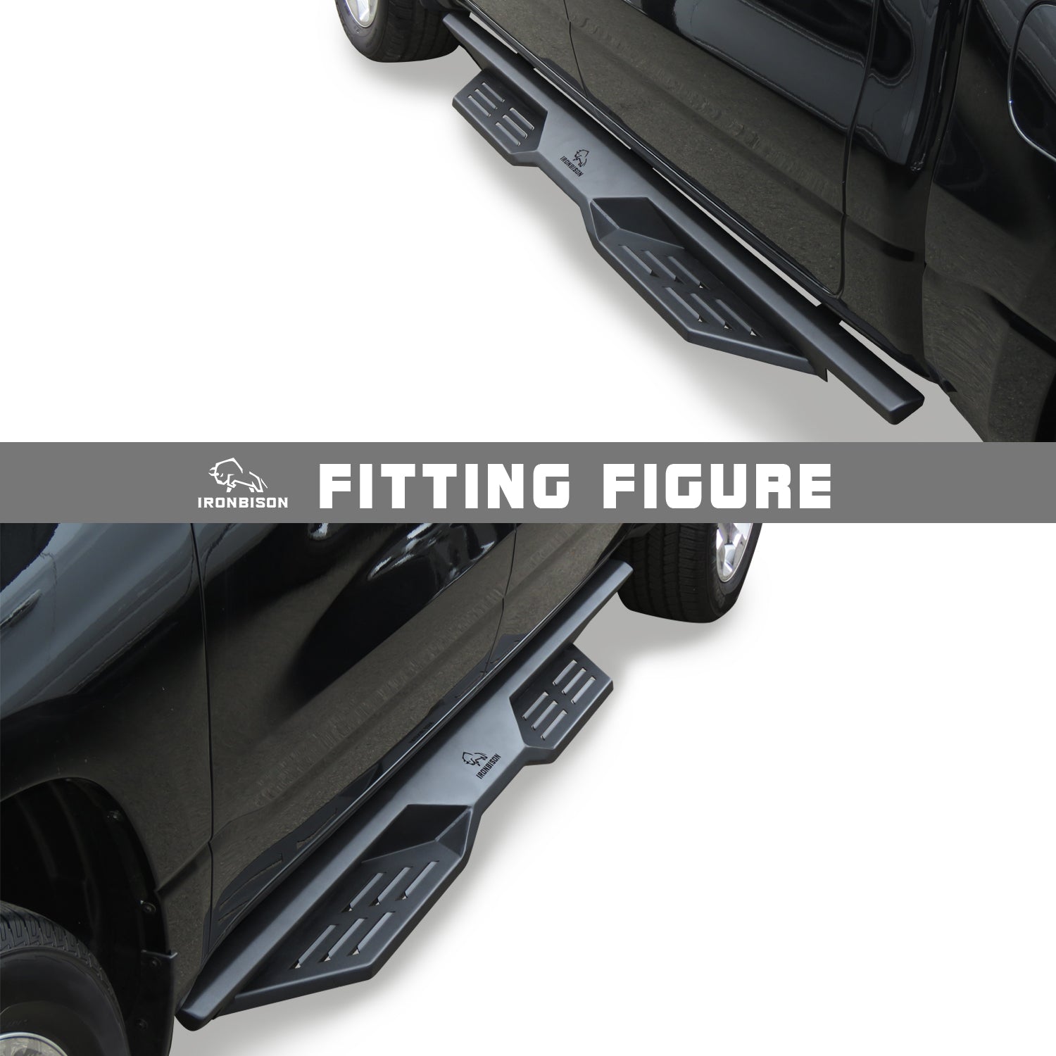 IRONBISON Defender Steps Running Boards Fit 2019-2025 Dodge RAM 1500 Crew Cab(Excl. 19-24 Classic Model) Truck Pick Up Fine Texture Black Side Steps Nerf Bars Rock Slider Armor (IBDS-D008)