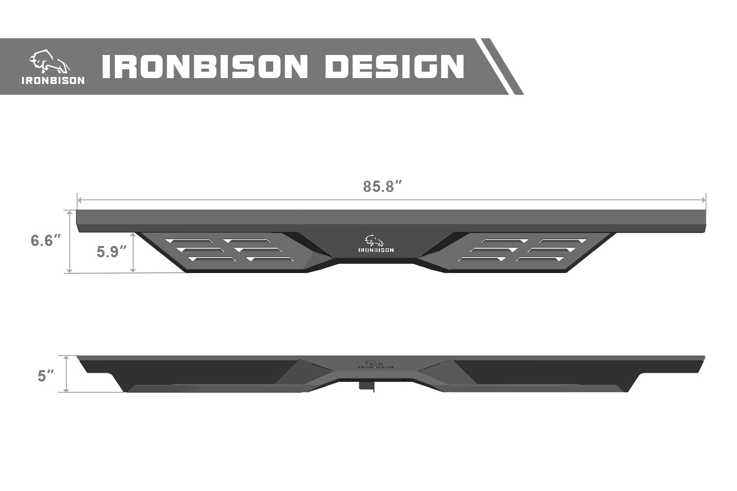 - Innovative Design - IRONBISON innovative wing shape 5” drop step pad design with 6” width step area. Mold formed non-slip strip safer for step in and out.