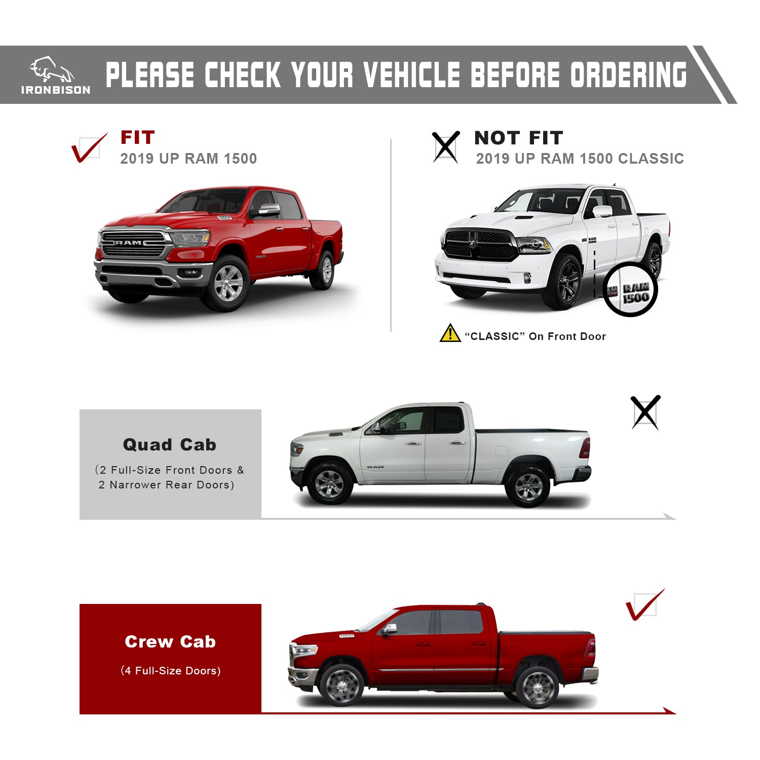- Important Notice - Only fits 2019-2025 Dodge RAM 1500 Crew Cab(Excl. 19-24 Classic Model) (Sent us the photos of your vehicles to confirm fitment if you not sure about the cab style after check the cab size picture)
