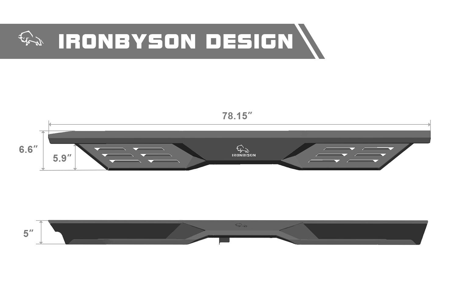 - Innovative Design - IRONBISON innovative wing shape 5” drop step pad design with 6” width step area. Mold formed non-slip strip safer for step in and out.